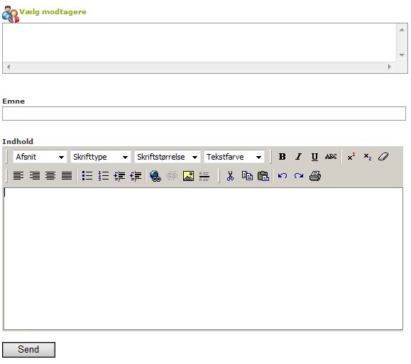 Udfyld beskeden med emne og indhold og klik på "Vælg modtagere" på følgende billede: