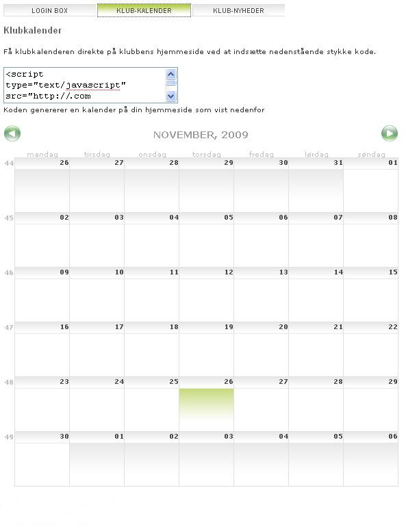 For at få vist Danseren kalenderen for din forening på hjemmesiden, indsættes koden på hjemmesiden.