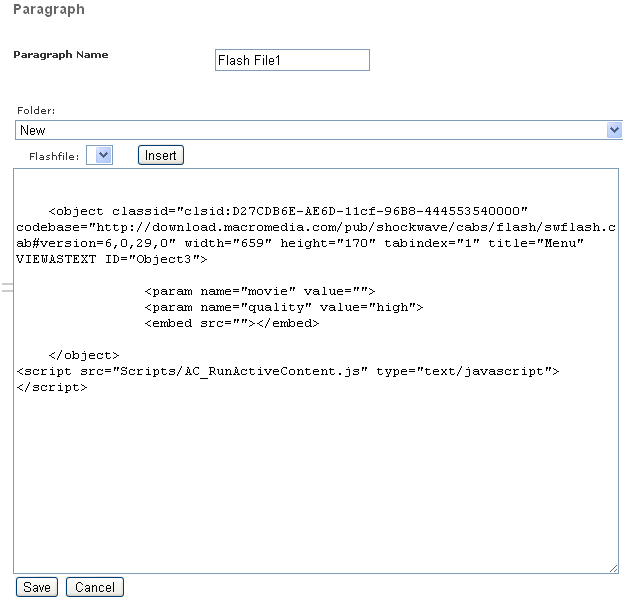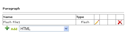 To add the Flash content to your paragraph, Select 'Flash' option in the paragraph