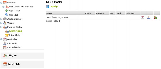 Her kan du se en liste over brugere og foreninger du er fan af.