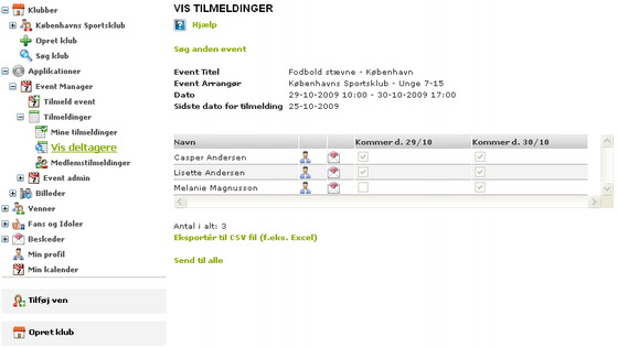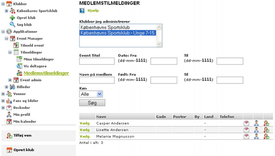 Her kan du se brugeres tilmeldinger i en forening du administrerer.