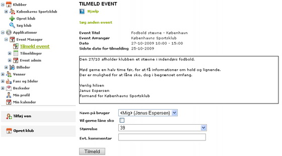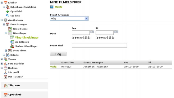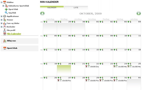 Her kan du se din kalender, som både indeholder events for din forening, samt personlige events.