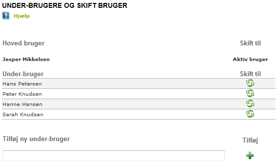 Skriv navnet på den underbruger du vil oprette i feltet ”Tilføj ny under-bruger” og tryk på det grønne plus under ”Tilføj”.